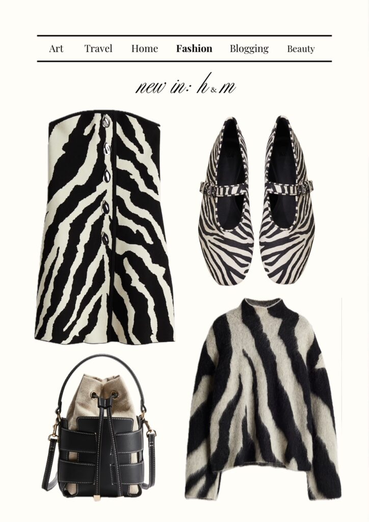 Zebra dress | Zebra flats | Black woven bucket bag | Zebra sweater | Baby blue sweater | Earrings | Denim vest | Baby blue dress