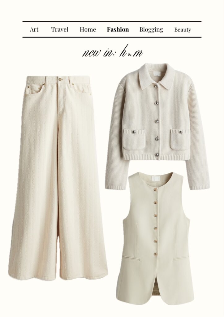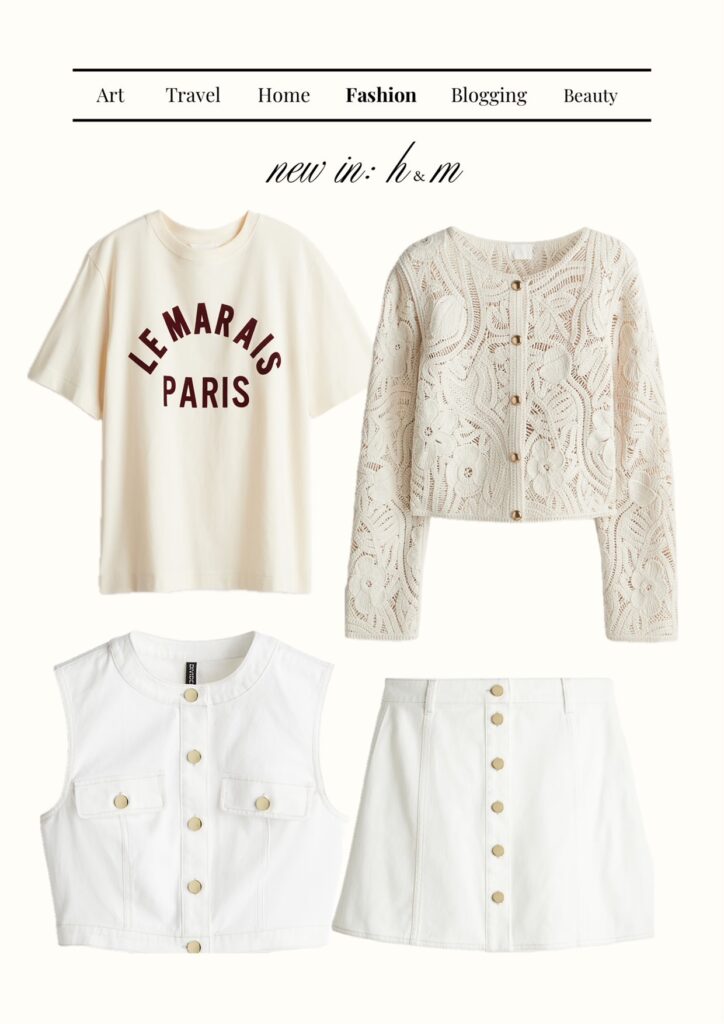 Paris tee | Knit button down | White jean button down | White jean skirt | Flared cream jeans | Cream button down cardigan | Cream vest