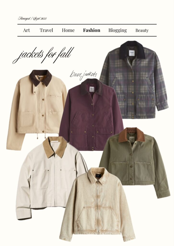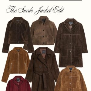 The other day I saw a tiktok of a girl talking about what jackets are trendy for Fall. She mentioned that in Europe, the girlies are wearing leather jackets and to toss your barn jacket asap. And while barn style jackets really had their moment last Fall, I still like them this year as a casual option. The jackets I have my eye on however are suede suede suede! Here are a selection of different styles to add to your Autumn capsule wardrobe. As the “ber” months settle in, the jacket really tends to make the whole outfit. So it doesn’t hurt to invest in having a good rotation. Happy shopping!