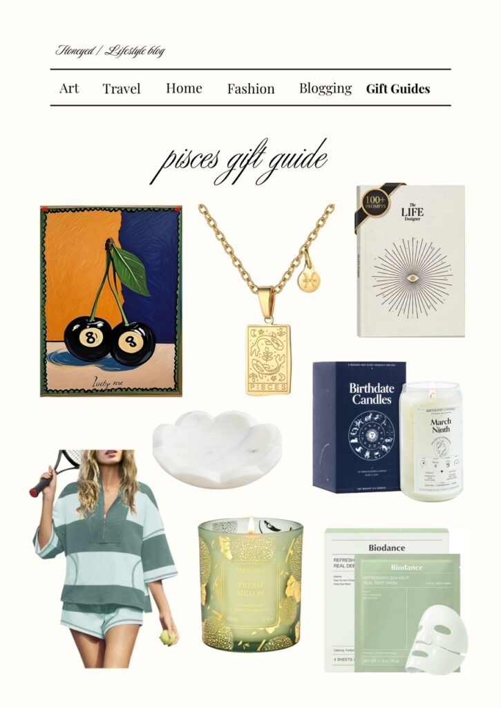 So, for our dreamy Pisces girlies, I would create a birthday basket filled with intentional goodies. For their inclination to self care, I’ve included a couple of different self care journals. In addition, I would add some skincare items, like a face mask or eye cream. For their spiritual and intuitive side, I love the stoic daily reminder cards. It’s a great way to keep their emotional spirits up. I’ve known many Pisces to be whimsical, positive, and energetic. They love to try new things and for that, I would include the pickleball set! And to top it off a couple of candles to make their space cozy, soft and spiritual is always a plus for any zodiac sign.